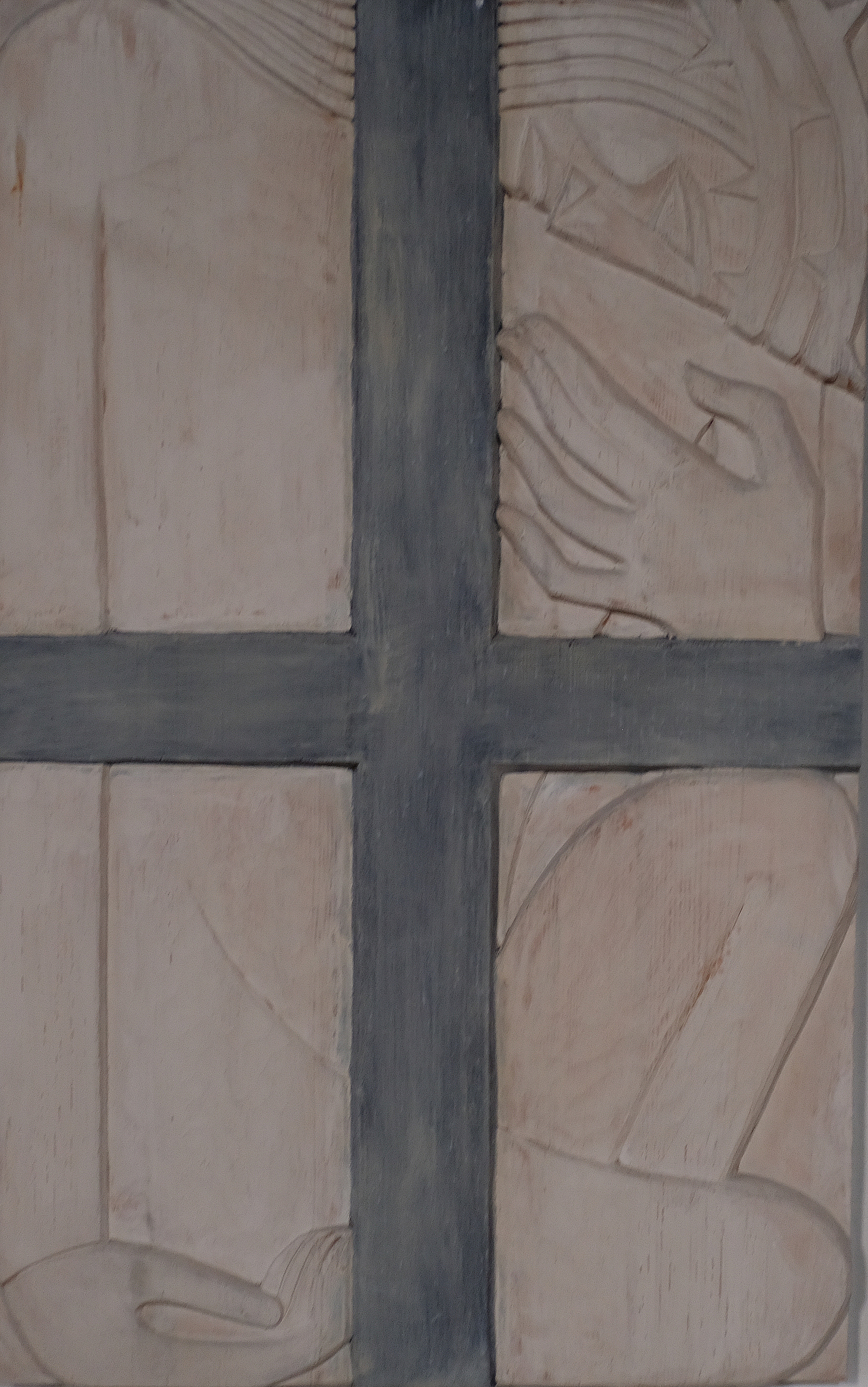 Das Kreuz wirkt fest, unbeweglich. Der menschliche Arm dagegen ist verletzlich, lebendig. In diesem Moment geschieht noch nichts – und doch ist alles entschieden. Es ist der Moment unmittelbar vor dem Schmerz, vor dem Nagel. Das Leiden wird nicht gezeigt, sondern angedeutet.